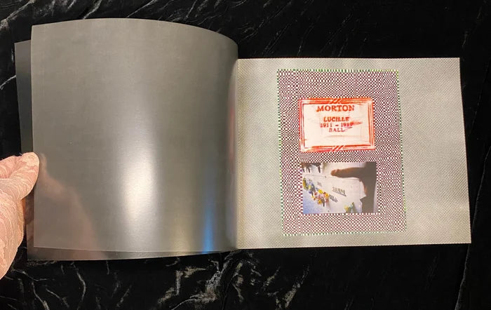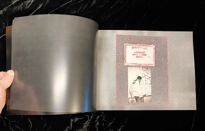 A series of collages based on a rubbing of Lucille Ball’s gravestone. Ball’s remains were moved from LA to upstate NY. Prior to the move, Covert made a series of rubbings from her grave. The collages contain Scott’s signature meditative drawing style combined with hedonistic photos from Scott’s archive.